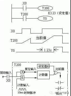 (2)10ms通用定時(shí)器(T200~T245) 共46點(diǎn)。這類定時(shí)器是對(duì)10ms時(shí)鐘累積計(jì)數(shù),設(shè)定值為1~32767,所以其定時(shí)范圍為0.01~327.67s。
